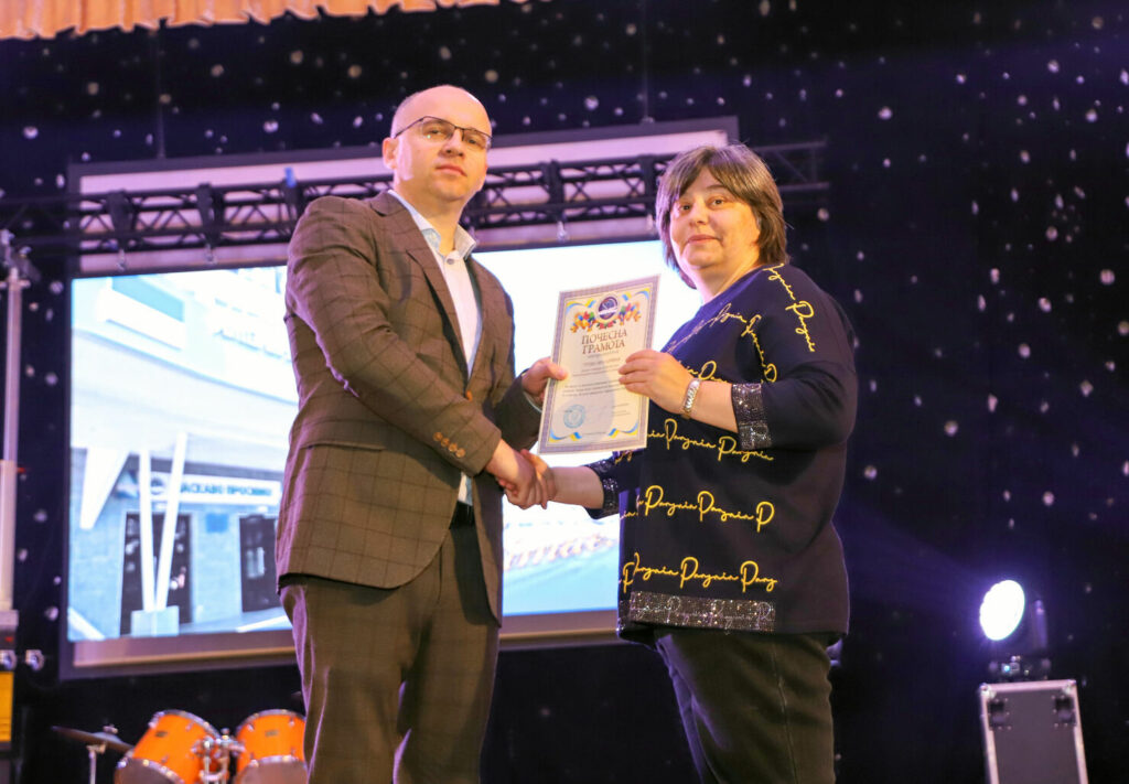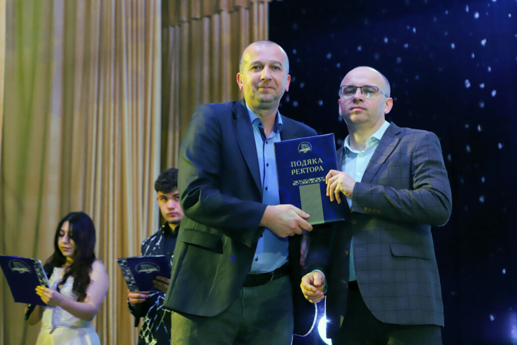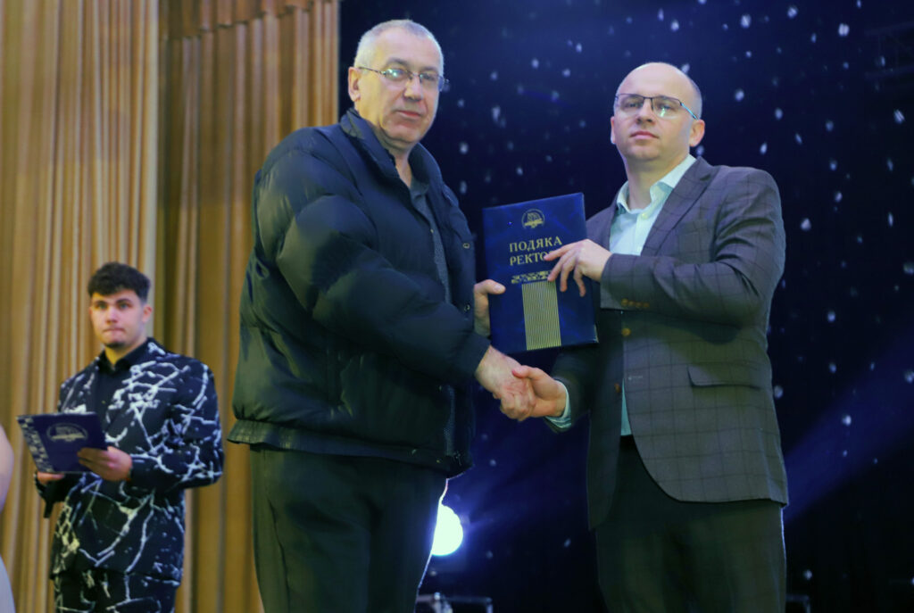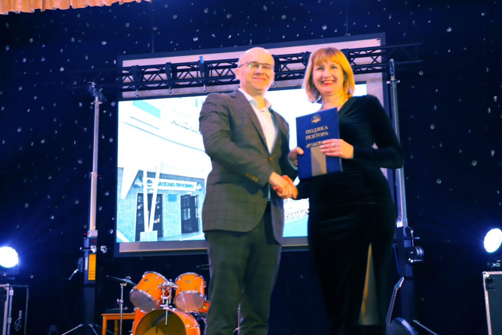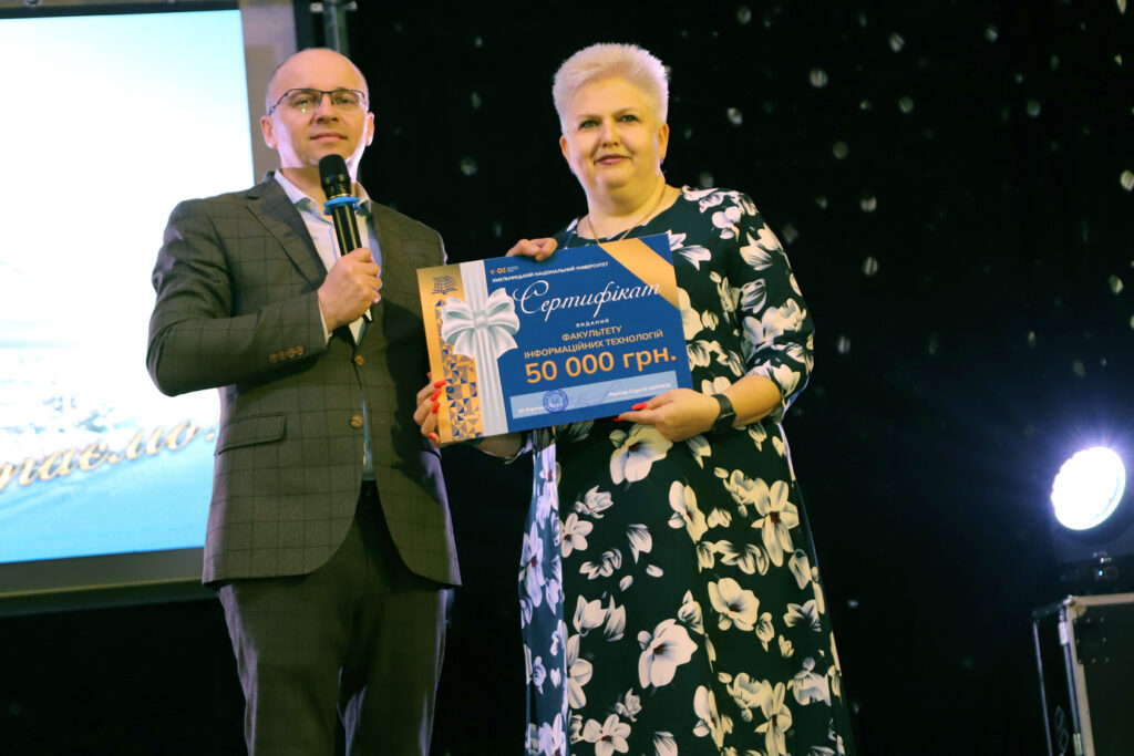 Ректор Сергій Матюх почесно вручив декану Тетяні Говорущенко грошовий сертифікат на розвиток факультету.