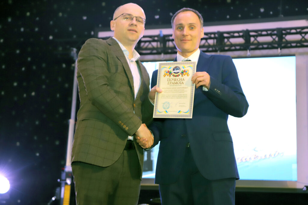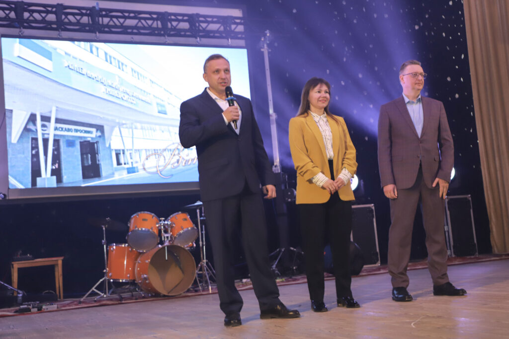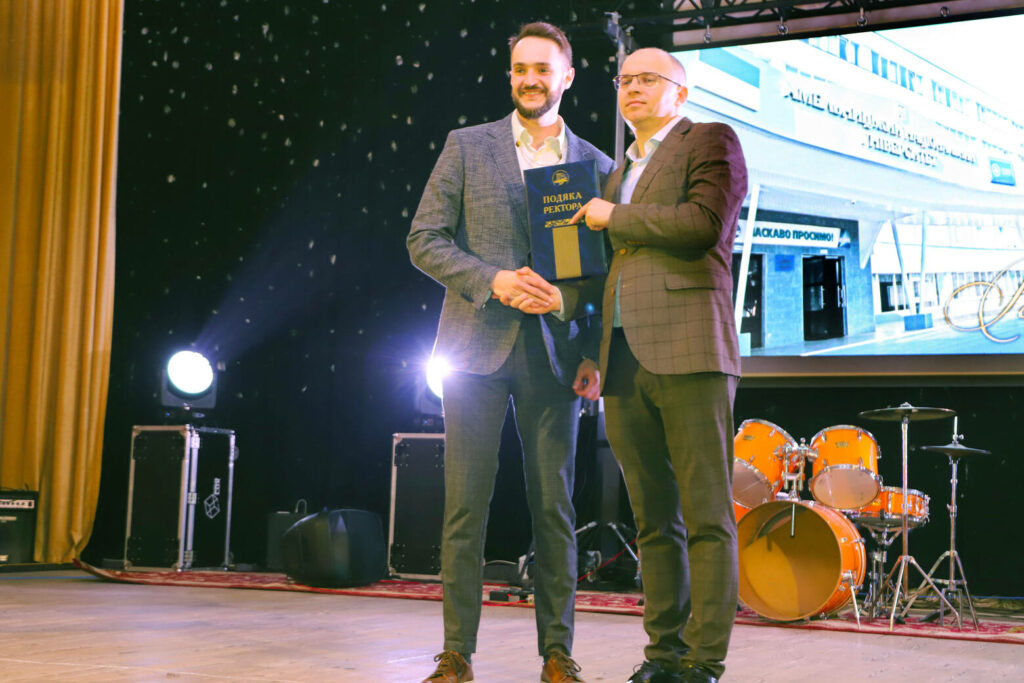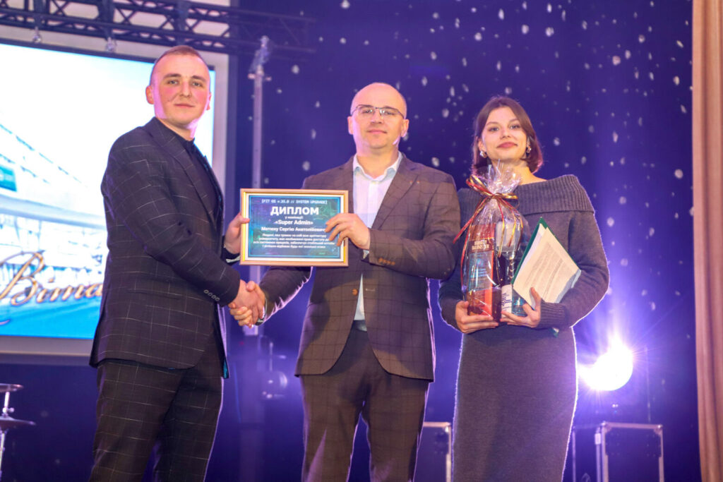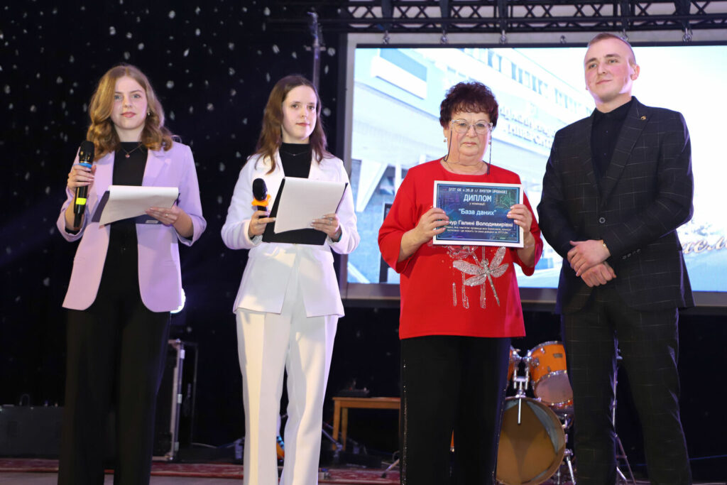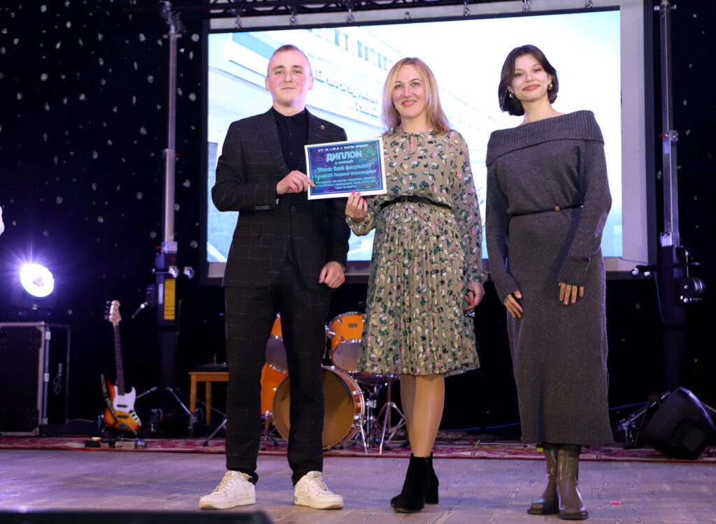Від молодої та креативної команди студради, на чолі з головою студради факультету Денисом Громським, зі сцени актової зали університету звучали вітальні слова та були врученні дипломи у жартівливих номінаціях і подарунки ректору, декану, заступникам декана, завідувачам кафедр, викладачам та працівникам деканату.