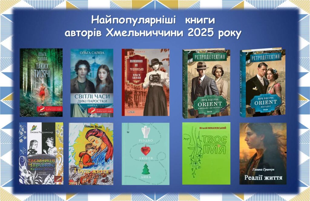 – добірку художніх видань авторів Хмельниччини, виданих 2025 року, зокрема, Ольги Саліпи, Лори Підгірної, Віталія Міхалевського, Галини Гринчук та ін. – абонемент худ. літ., 4-й пов.;