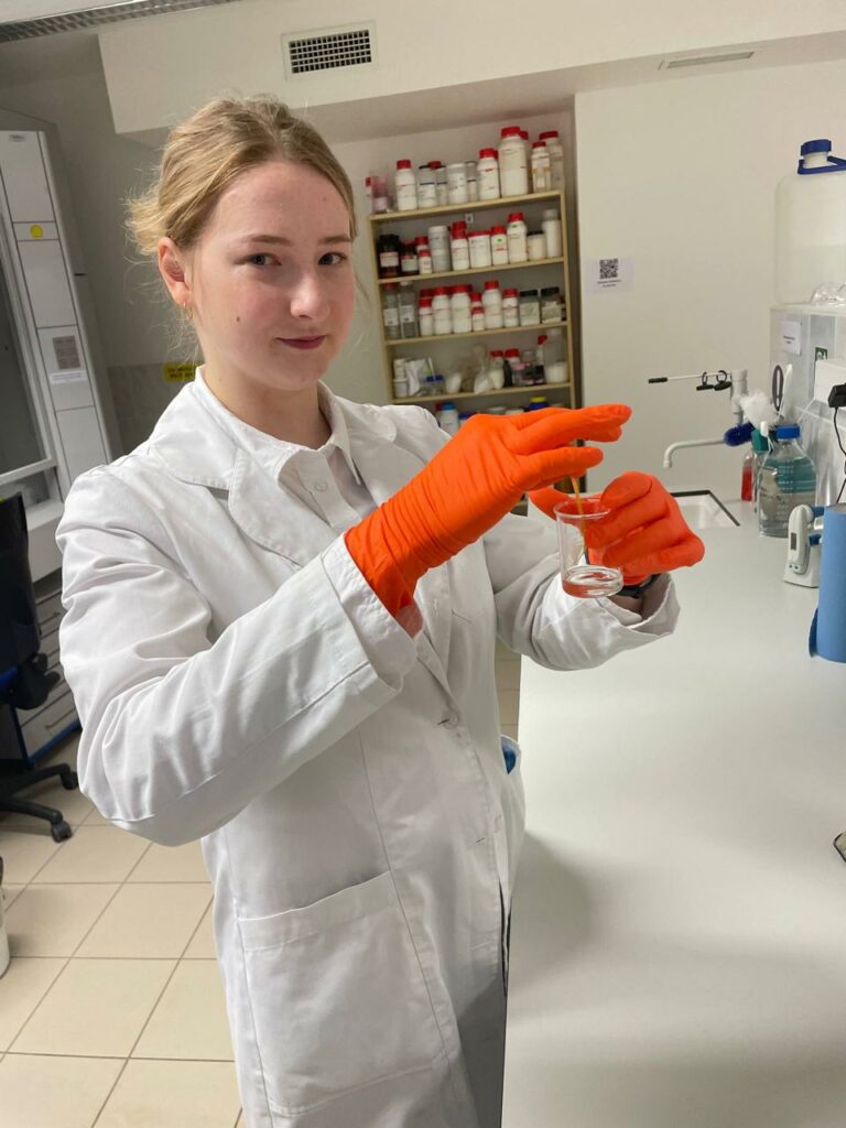 Під час академічної мобільності магістрантка групи ХТІм-24-1 Зоряна Черешня покращила теоретичні та практичні компетентності в галузі хімічних технологій косметичних засобів, зокрема технології виробництва сухого шампуню. Зоряна Черешня ознайомилася з сучасною лабораторною та дослідницькою базою Технічного університету Лібереця, дослідила властивості компонентів косметичних засобів, а також зібрала експериментальні дані для виконання кваліфікаційної роботи магістра.
