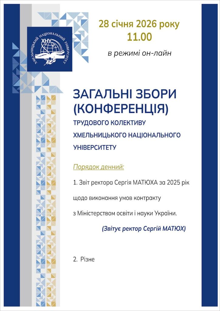 Загальні збори (конференція) трудового колективу + Додати до Google Календаря + iCal / Outlook export 00 дні 00 годин 00 хвилин 00 секудн January 2026 Jan 28 2026 Загальні збори (конференція) трудового колективу Jan 29 2026 До уваги науковців! Вебінари від компанії Clarivate 29 січня 2026 Не знайдено жодної події!