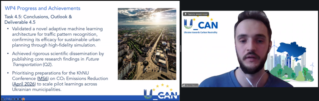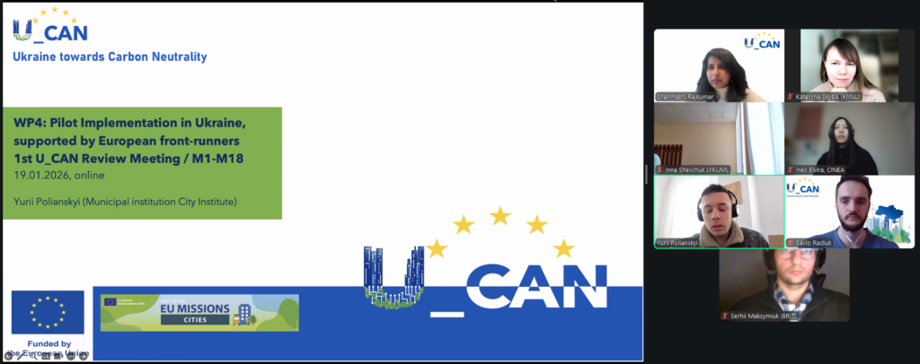 19 січня 2026 року в онлайн-форматі відбулась проміжна підсумкова зустріч по проєкту «U_CAN – Ukraine towards Carbon Neutrality». До зустрічі долучилися проректорка з науково-педагогічної роботи Катерина Скиба та доцент кафедри комп’ютерних наук Павло Радюк.