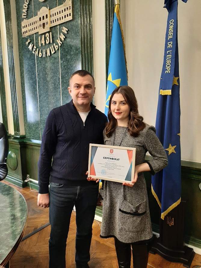 Окремим етапом професійного розвитку стало стажування у Хмельницькій міській раді, під час якого студентка мала можливість застосувати знання в управлінських процесах та набула досвіду проведення екскурсій містом, що було особливо корисним для майбутньої професії.