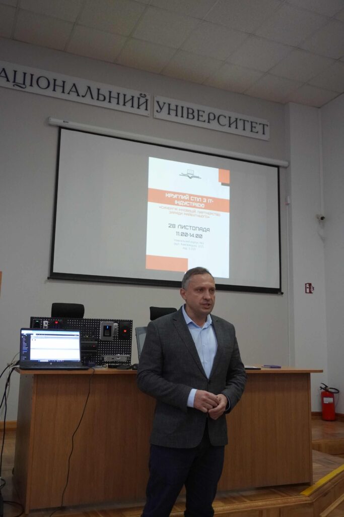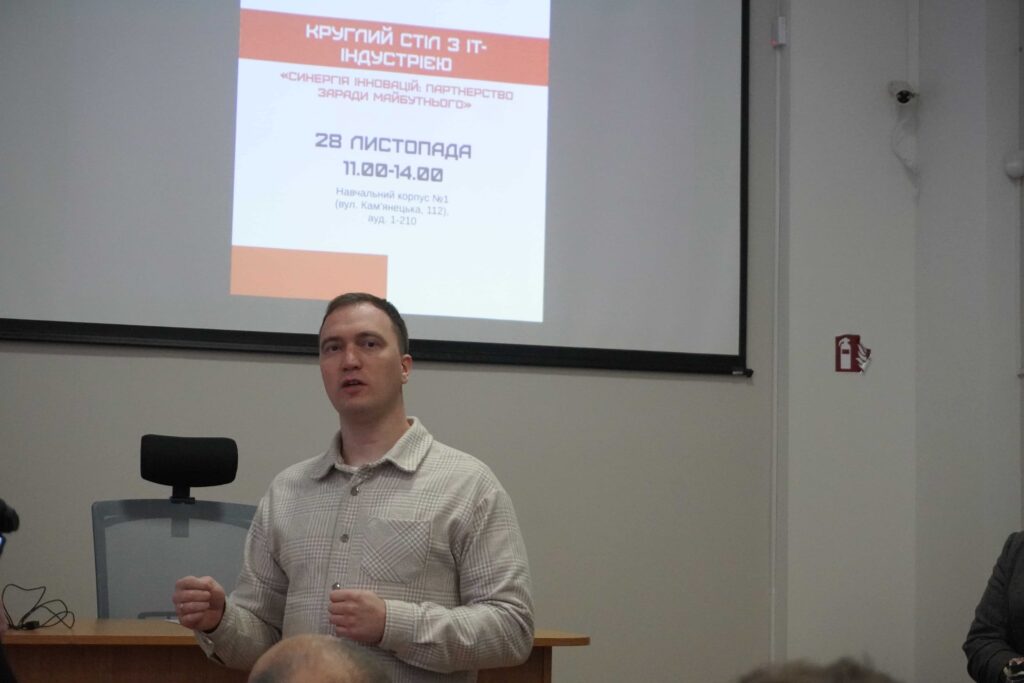 28 листопада 2025 року за ініціативи ректора Хмельницького національного університету Сергія Матюха та декана факультету інформаційних технологій ХНУ Тетяни Говорущенко в Хмельницькому національному університеті був проведений круглий стіл з ІТ-індустрією «Синергія інновацій: Партнерство заради майбутнього», в якому взяли участь понад 30 представників 25 різних компаній – EPAM, SoftServe Ukraine, stfalcon.com, Авіві, Хмельницький ІТ кластер, ВІТАГРО, ГО «Агенція сталого розвитку «АСТАР», Arm Drones, XCity, SheepFish, діджитал-агенція Imrev, ТОВ «ТопСітіСервіс», ТОВ «КАТЕК-Україна», GM Host, «НОЛТ ТЕХНОЛОДЖИС», Стфалкон Академія, Hexide Digital, ТОВ «Пращур», ТОВ «Жало», OpenSystem, Молодіжна рада м. Хмельницького, Приватбанк, FinFolio.Lead, ТОВ «Твінкор Системс», Ancestor тощо, серед яких було дуже багато випускників факультету інформаційних технологій ХНУ!