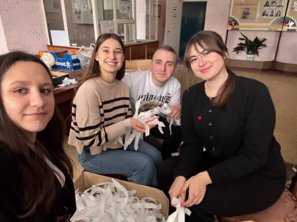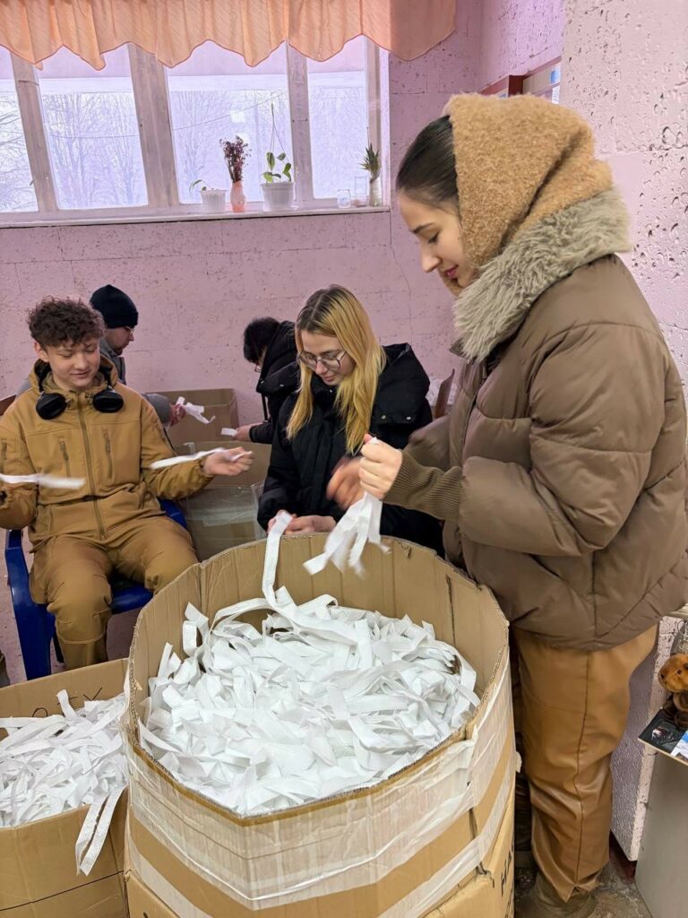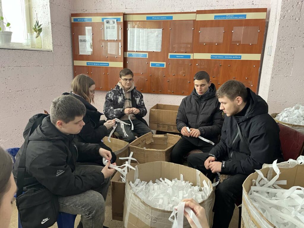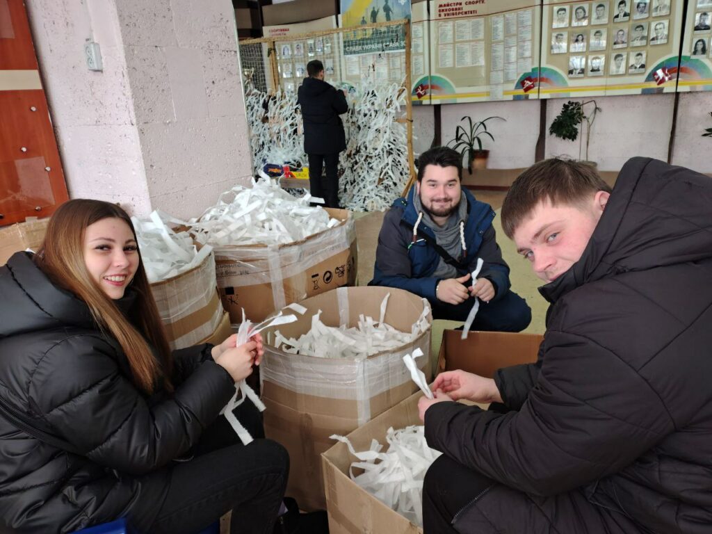 На початку лютого спільнота Хмельницького національного університету впродовж двох тижнів активно долучалася до важливої волонтерської ініціативи – плетіння маскувальних сіток для потреб наших захисників у спортивному комплексі, де вже чотири років поспіль  від початку повномасштабного вторгнення не зупиняється цей процес. До справи об’єдналися студенти, викладачі та співробітники університету, продемонструвавши високу громадянську свідомість, згуртованість і небайдужість.