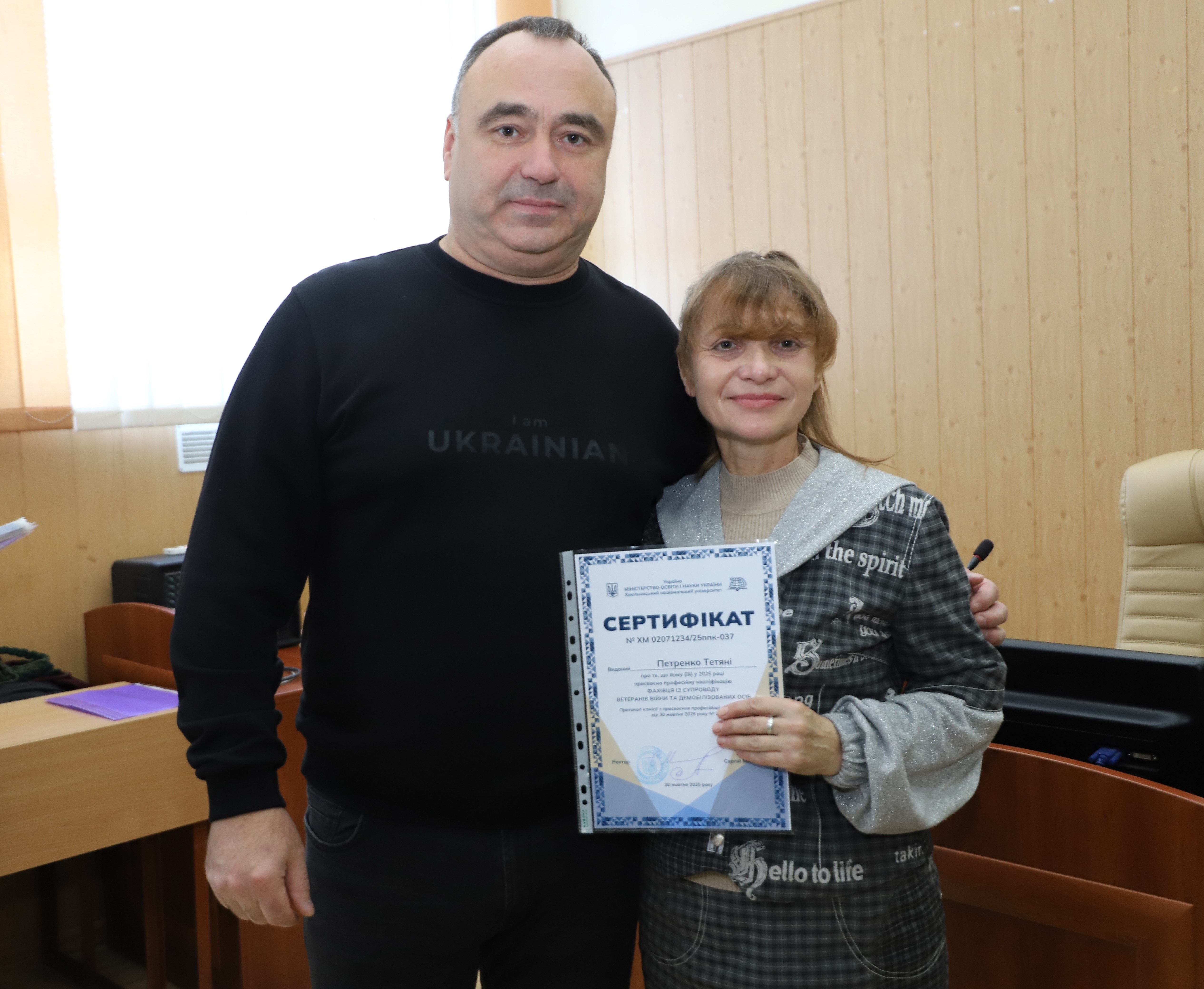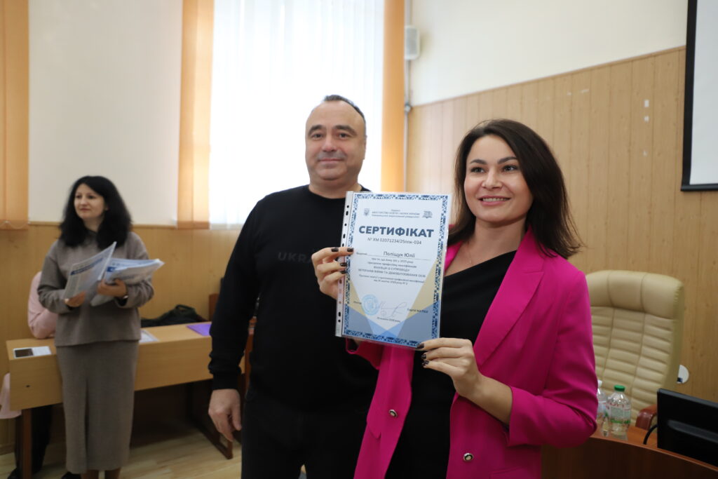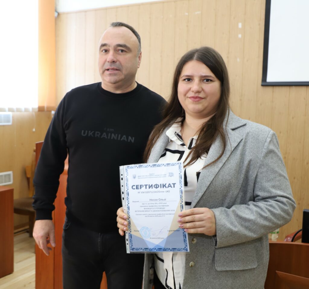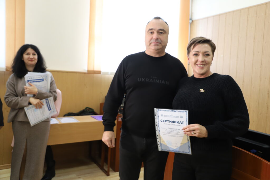 31 жовтня відбулося вручення урочисте вручення сертифікатів. 97 осіб отримали сертифікат про присвоєння професійної кваліфікації фахівця із супроводу ветеранів та демобілізованих осіб, а також сертифікат про підвищення кваліфікації.