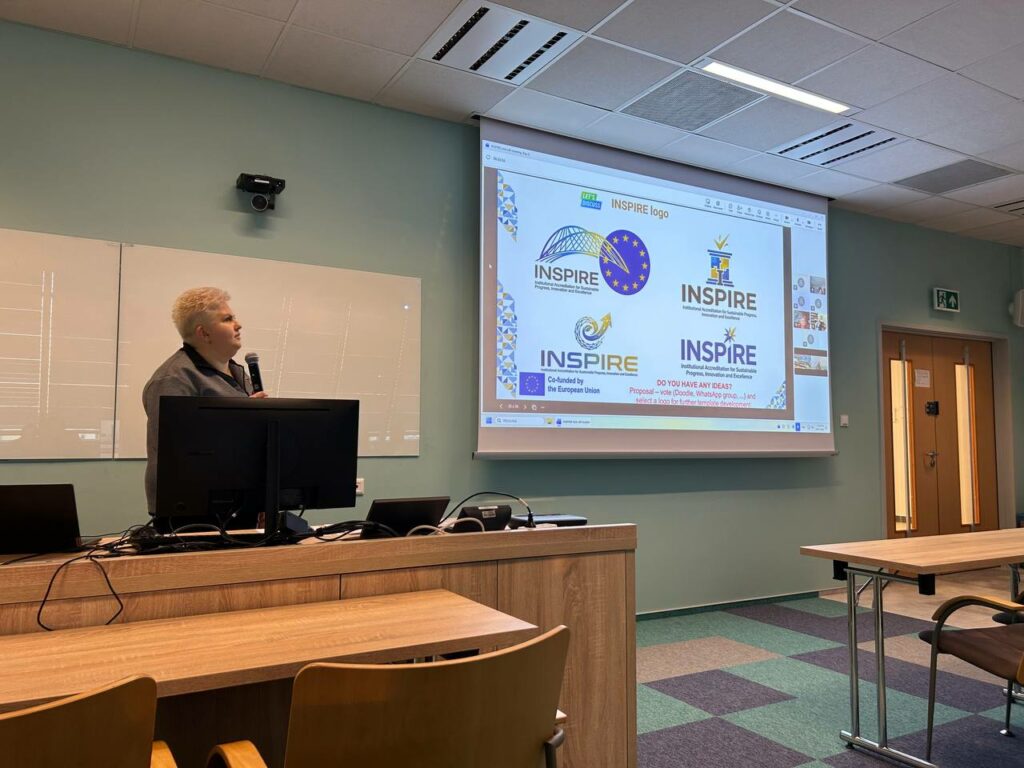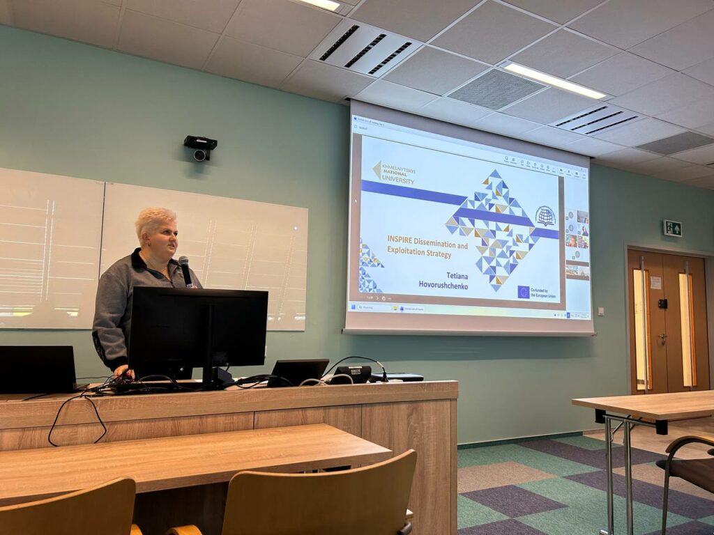 Під час стартової зустрічі проф. Тетяна Говорущенко представила Хмельницький національний університет та команду ХНУ, яка 4 роки працюватиме над реалізацією проєкту ERASMUS+ INSPIRE. Крім цього, проф. Тетяна Говорущенко представила стратегію поширення та забезпечення сталості результатів проєкту, оскільки Хмельницький національний університет є лідером Робочого пакету 6 “Dissemination and sustainability”, а також 4 варіанти лого проєкту, розроблені командою ХНУ для подальшого вибору членами консорціуму.