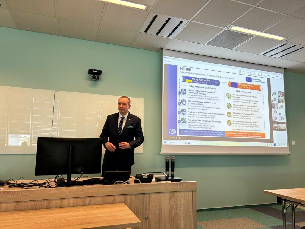 ERASMUS+ INSPIRE – це проєкт системної трансформації, спрямований на впровадження в Україні сталої моделі інституційної акредитації, гармонізацію української вищої освіти з європейськими стандартами в межах євроінтеграції, підвищення культури якості та посилення інституційної спроможності університетів як ключового чинника європейської інтеграції та повоєнного відновлення.