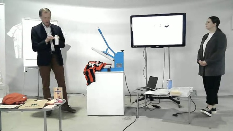 На практичному заняті здобувачі вищої освіти спеціальності «Технології легкої промисловості» дізналися про сучасний асортимент та екологічні аспекти застосування термотрансферних плівок для текстильного декорування, рекламних технологій та широкоформатного друку. Спікер Піт Вельт’єнс також презентував інноваційні матеріали – спеціалізовані термопереносні плівки Pearl-Glitter, Color Up для креативних рішень текстильної промисловості.