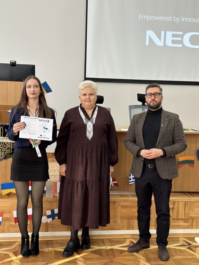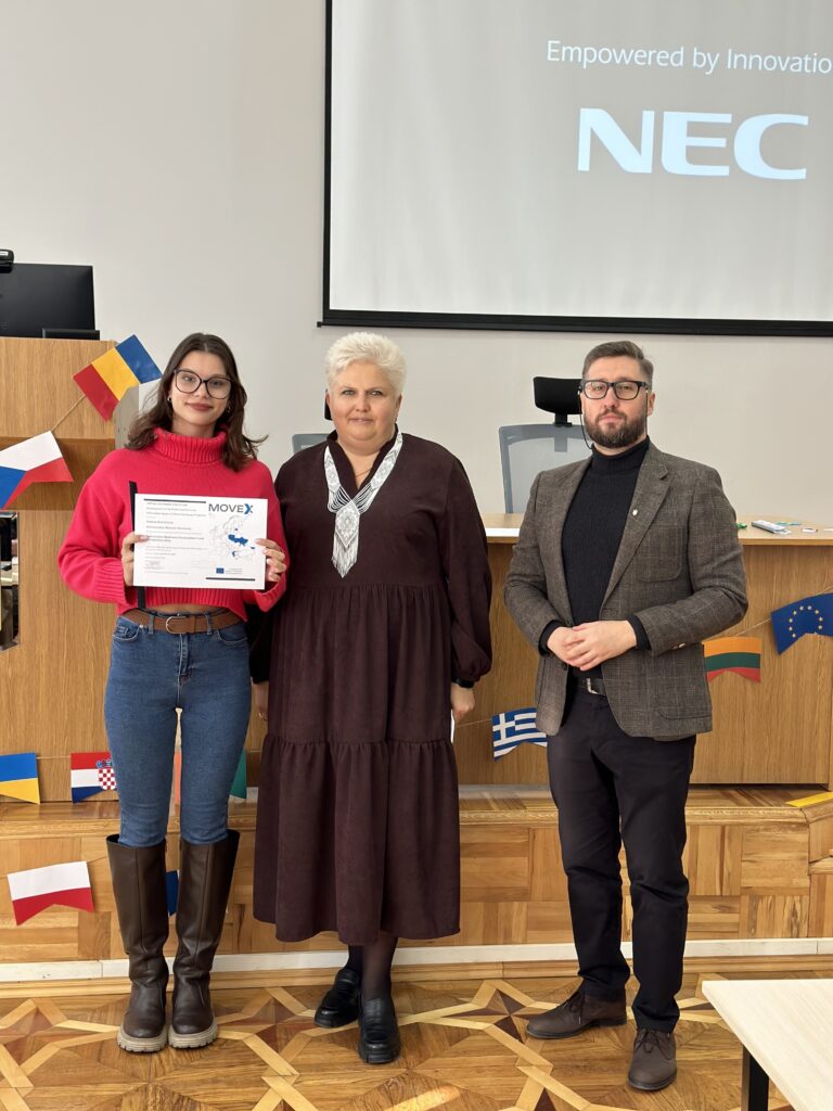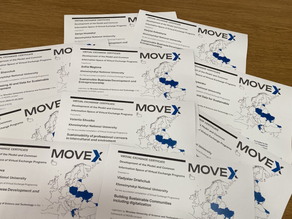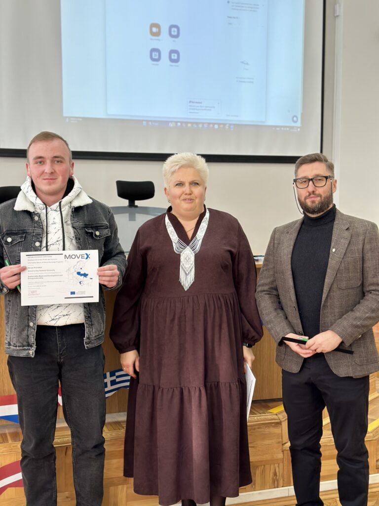 - приємної – вручення сертифікатів 19 учасникам першого туру віртуальних академічних обмінів в рамках проєкту Erasmus+ MOVEx керівником проєкту, деканом ФІТ проф. Тетяною Говорущенко та відповідальним виконавцем проєкту, заступником декана ФІТ проф. Сергієм Лисенком – в першому турі віртуальних академічних обмінів брали участь 19 здобувачів факультету інформаційних технологій ХНУ за першим (бакалаврським) і другим (магістерським) рівнями;