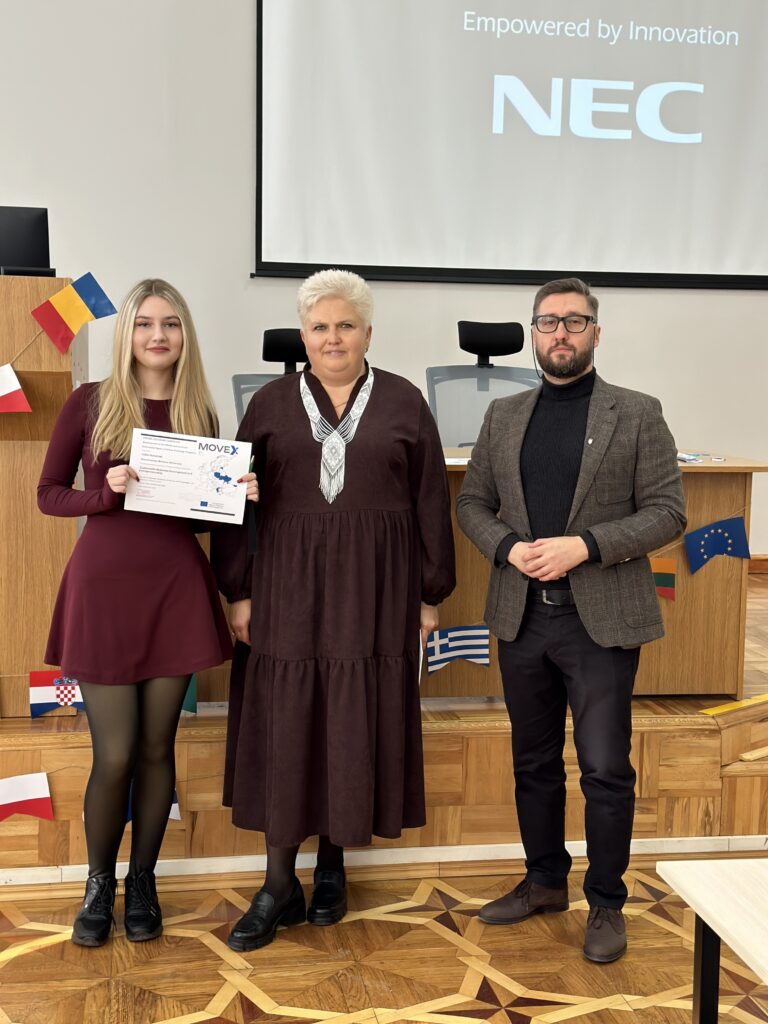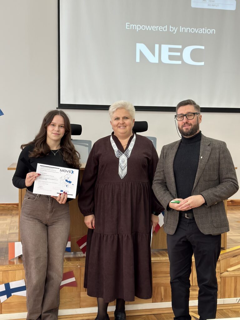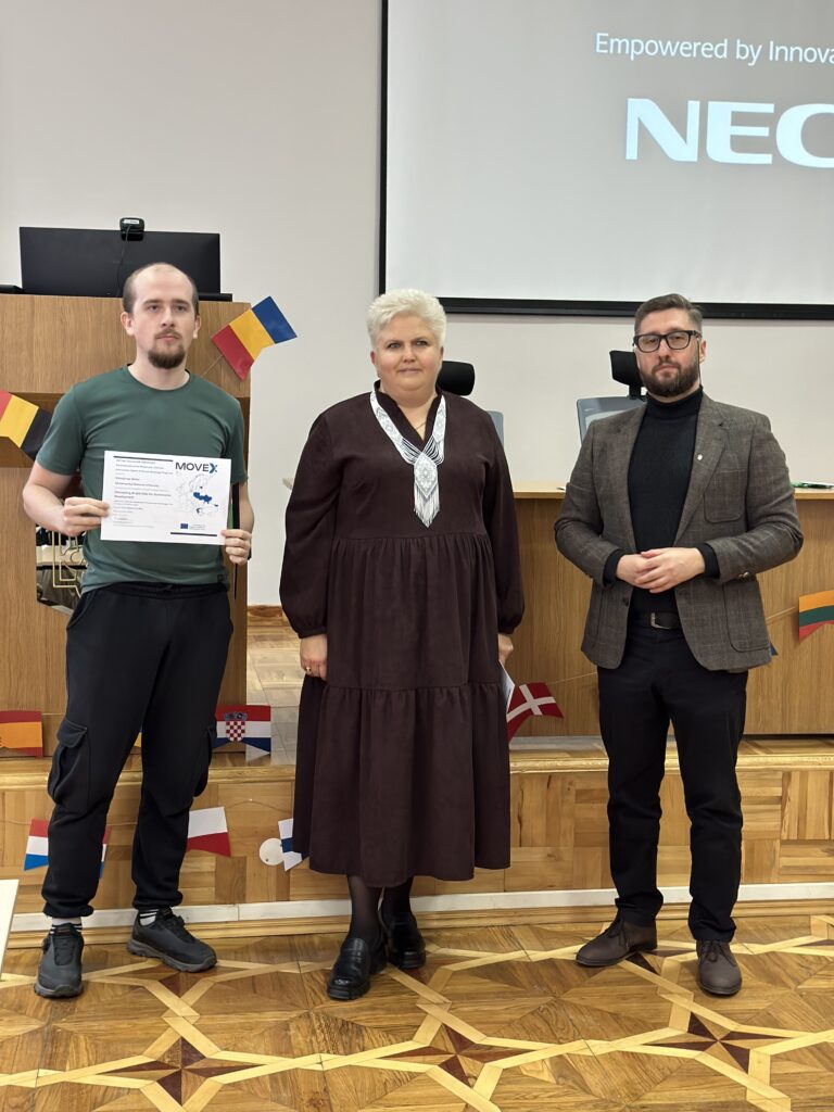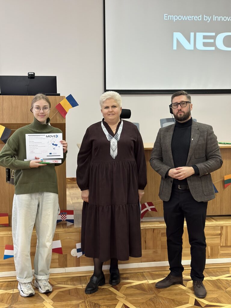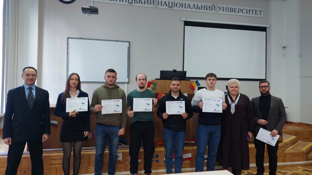 - приємної – вручення сертифікатів 19 учасникам першого туру віртуальних академічних обмінів в рамках проєкту Erasmus+ MOVEx керівником проєкту, деканом ФІТ проф. Тетяною Говорущенко та відповідальним виконавцем проєкту, заступником декана ФІТ проф. Сергієм Лисенком – в першому турі віртуальних академічних обмінів брали участь 19 здобувачів факультету інформаційних технологій ХНУ за першим (бакалаврським) і другим (магістерським) рівнями;
