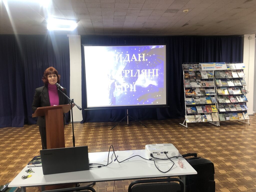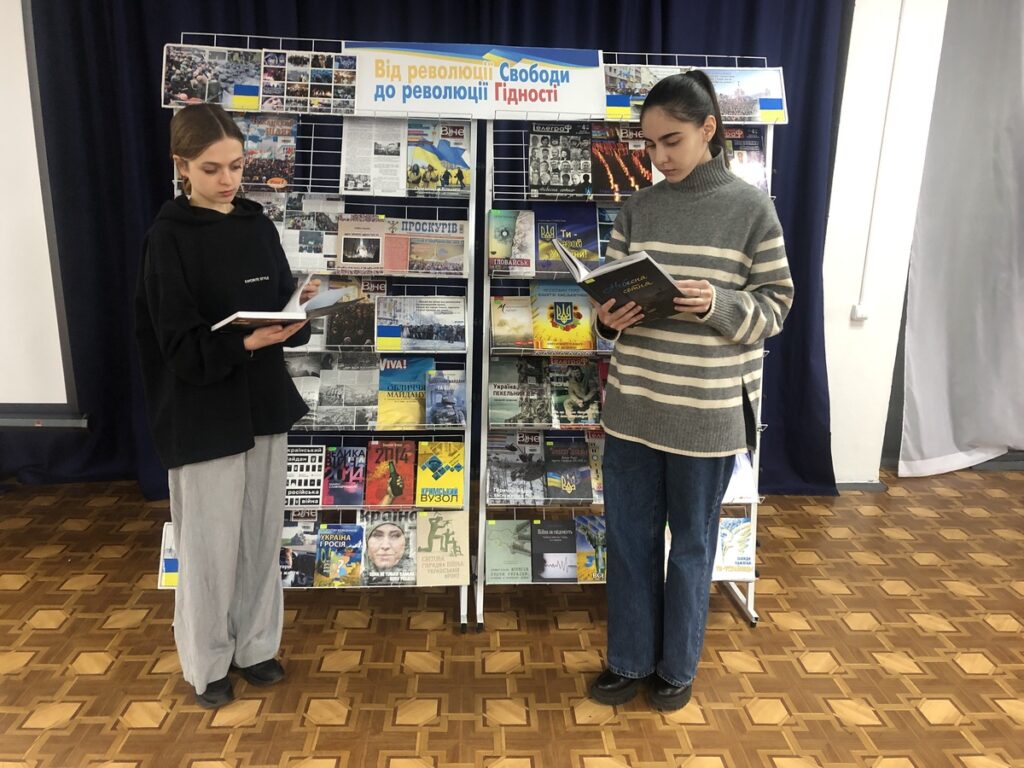 До заходу було розгорнуто тематичну книжково-ілюстративну виставку «Від революції свободи до революції Гідності», яка містила навчальні, публіцистичні та художні матеріали.
