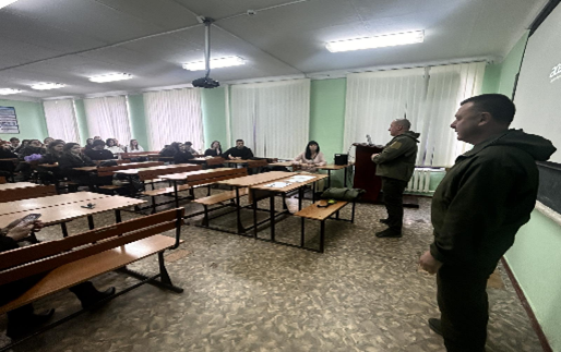 Під час зустрічі вони ознайомили студентів 1–2 курсів із можливостями навчання на кафедрі, розповіли про спеціальності, які можна здобути, а також про перспективи, що відкриваються перед випускниками програми базової військової підготовки.