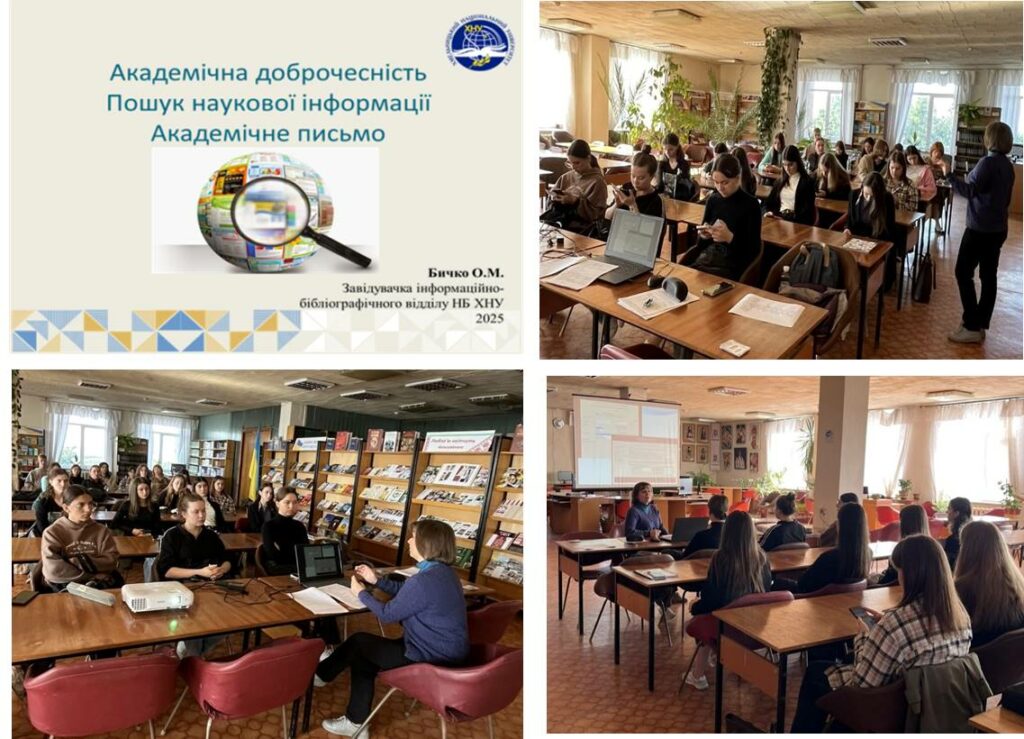 Лекції провела завідувачка інформаційно-бібліографічного відділу наукової бібліотеки ХНУ Оксана Бичко.