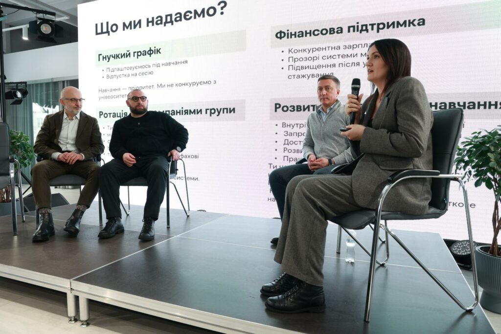 Захід «Залишайся, створюй, зростай» відбувся у форматі живої дискусії, під час якої студенти освітньої програми «Хімічні технології та інженерія» активно ставили питання щодо можливостей кар’єрного старту, рівня заробітної плати, динаміки професійного зростання та перспектив реалізації в українських компаніях. Для студентів освітньої програми «Хімічні технології та інженерія» особливо актуальними стали питання модернізації виробничих процесів, впровадження нових технологічних рішень та розвитку інвестиційних проєктів.