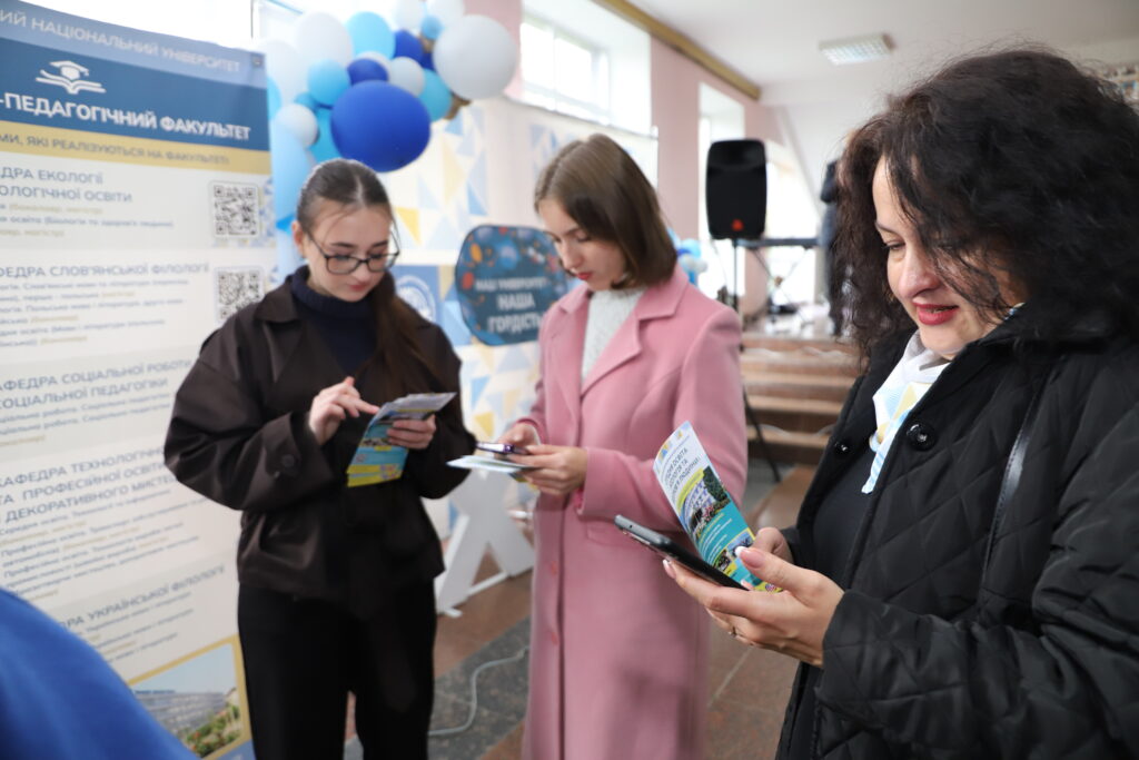 Майбутні вступники мали змогу поспілкуватися з викладачами університету, поставити запитання щодо навчальних програм і майбутніх перспектив, а також отримати відгуки з перших уст від студентів, які поділилися власним досвідом навчання та участі у наукових, культурних і міжнародних проєктах.