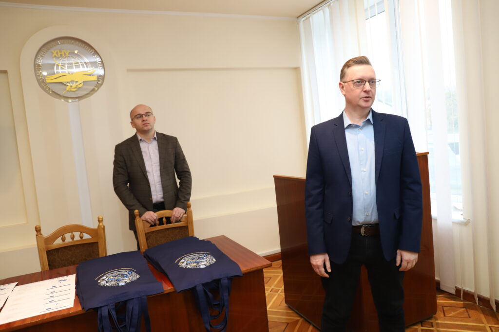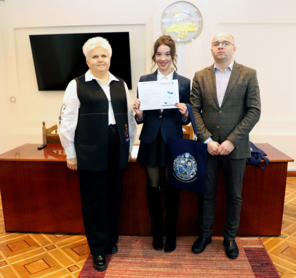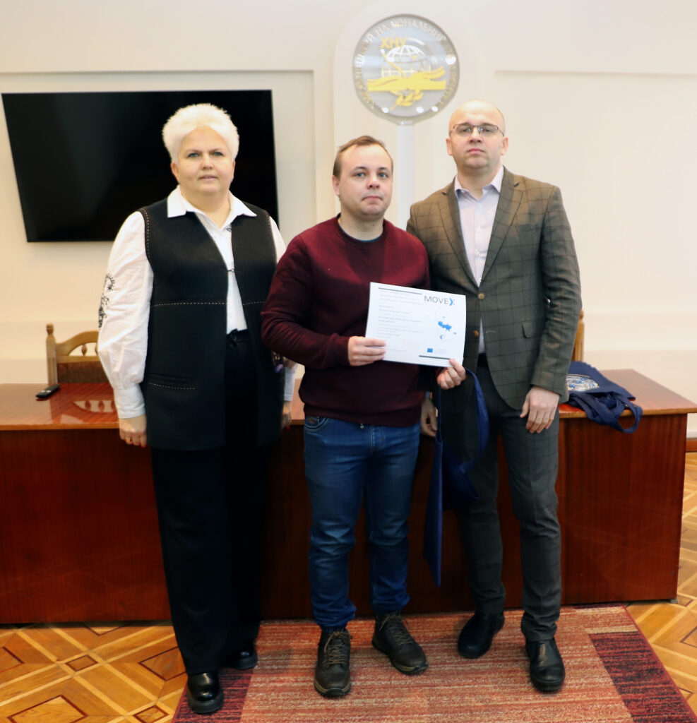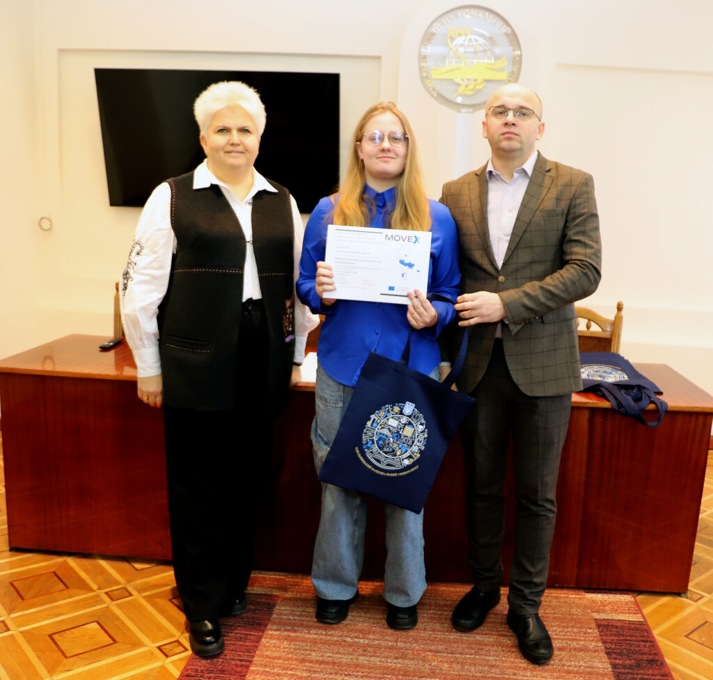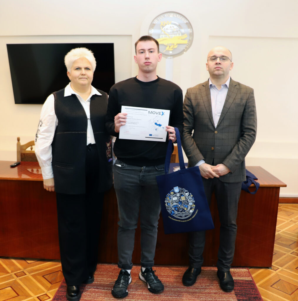 До студентів звернувся також і проректор з науково-педагогічної роботи Дмитро Васильківський. Дмитро Миколайович відзначив практичну цінність проєкту: «Участь у проєкті Erasmus+ MOVEx – це не лише про теорію, а й про розвиток “soft skills”: міжкультурної комунікації, володіння іноземними мовами та цифрової грамотності. Ми постійно працюємо над тим, щоб розширювати можливості для наших студентів, і ваші успіхи сьогодні – це найкраща мотивація для університету розвивати міжнародну співпрацю й надалі. Бажаю вам не зупинятися на досягнутому!»
