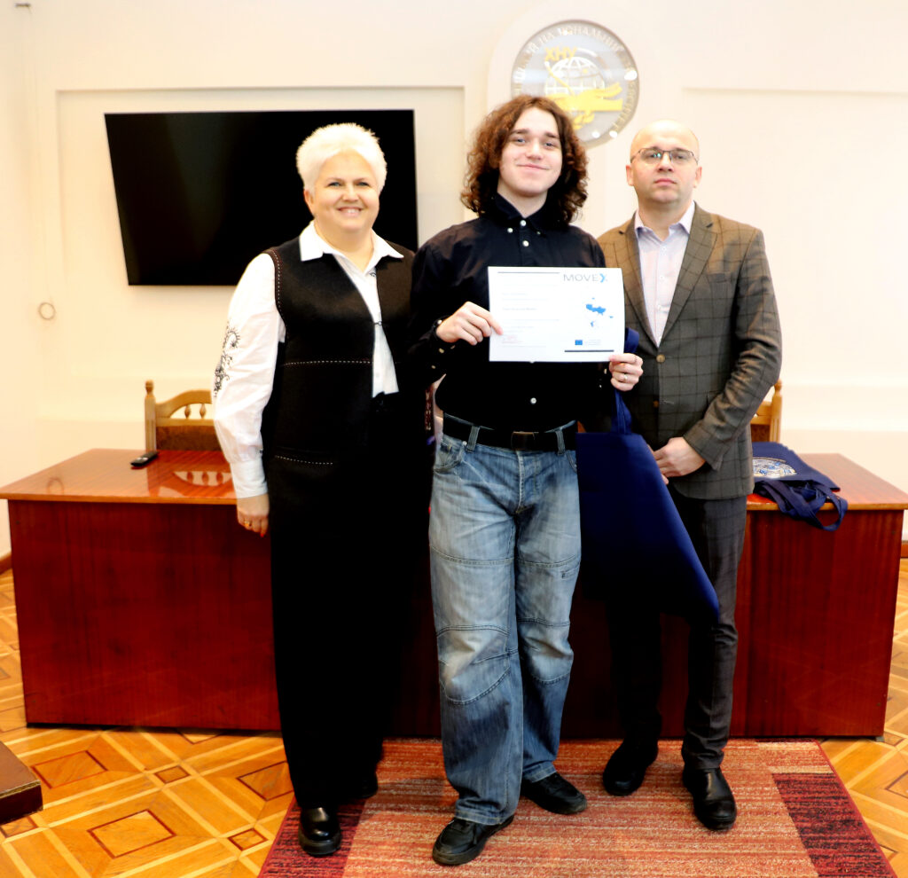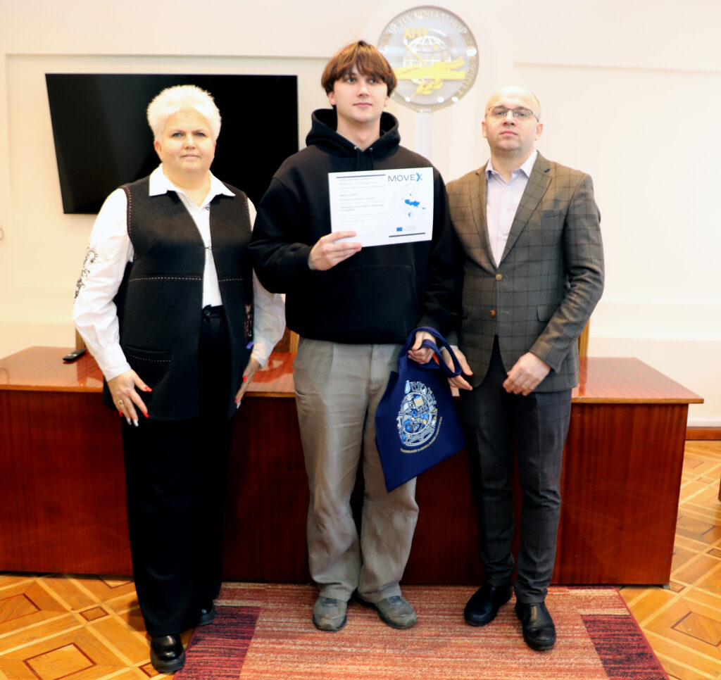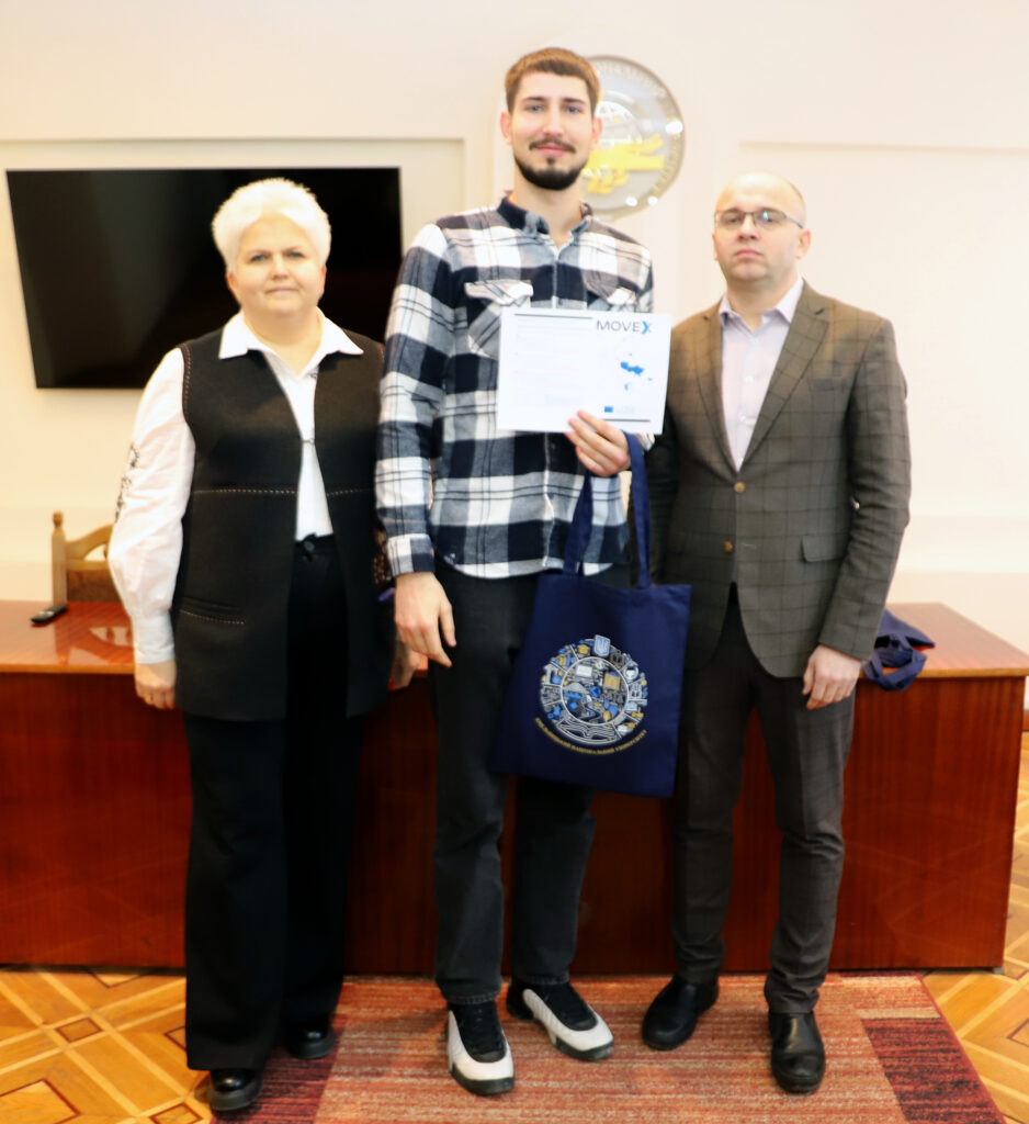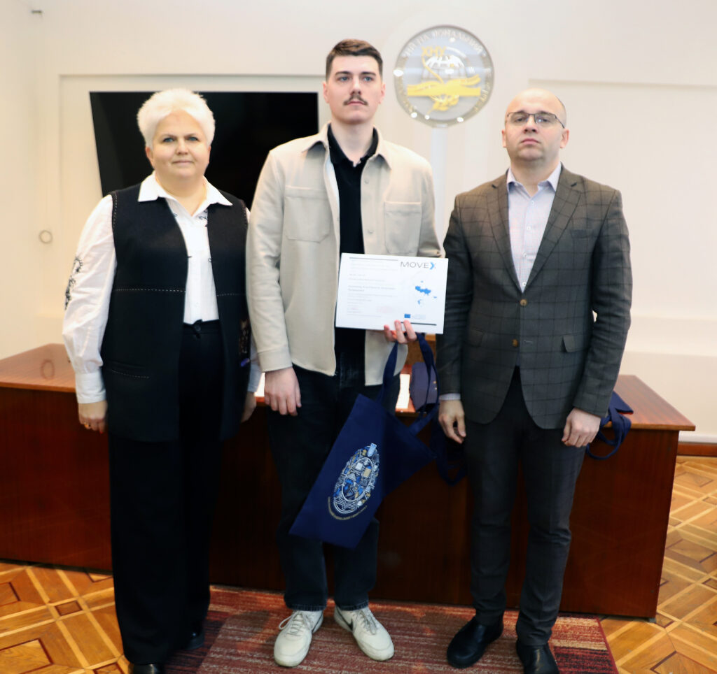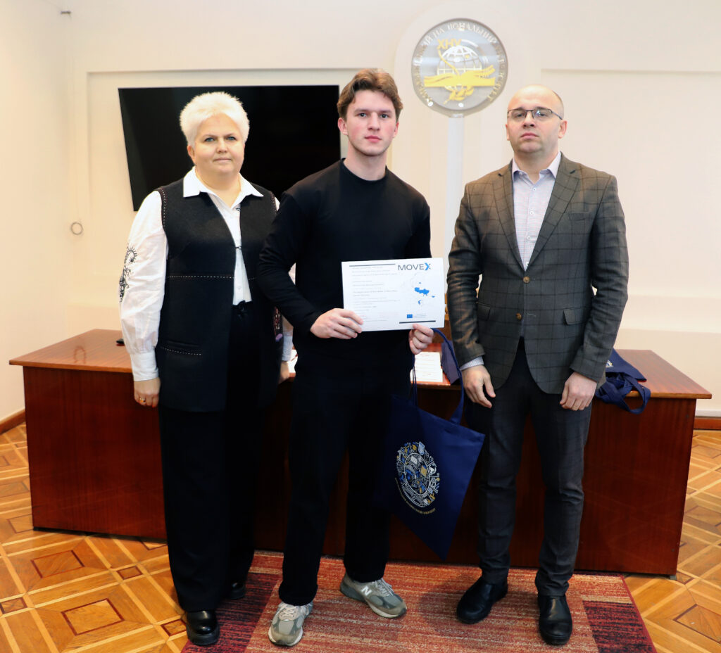 Від студентів, які брали участь у програмі, виступив Тимур Ісаєв, здобувач освітньо-наукової програми «Інформаційні системи і технології» третього (освітньо-наукового) рівня, який від імені всіх учасників програм віртуальних обмінів подякував університету за можливість долучитися до сучасного формату навчання. У своєму виступі він підкреслив, що для молодих науковців, які працюють у сфері інформаційних систем, досвід віртуальної мобільності є критично важливим. Тимур зазначив, що проєкт MOVEx дозволив не лише поглибити технічні знання, а й побачити, як цифрові технології трансформують освіту на міжнародному рівні. Він зауважив, що здобуті навички стануть міцним фундаментом для його майбутньої наукової діяльності та професійної реалізації. За його словами, такі ініціативи стирають кордони та дають студентам реальний шанс стати частиною глобальної інтелектуальної спільноти.