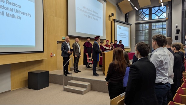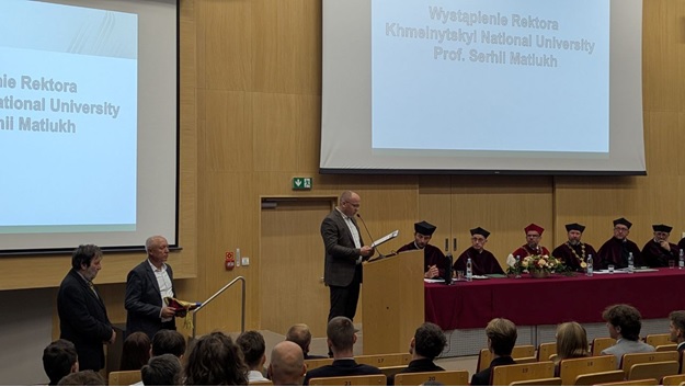 2 жовтня 2025 року делегація Хмельницького національного університету взяла участь в церемонії відкриття 2025/2026 навчального року для студентів першого курсу денної та заочної форм навчання факультету машинобудування та робототехніки (WIMiR) Гірничо-металургійної академії в Кракові.
