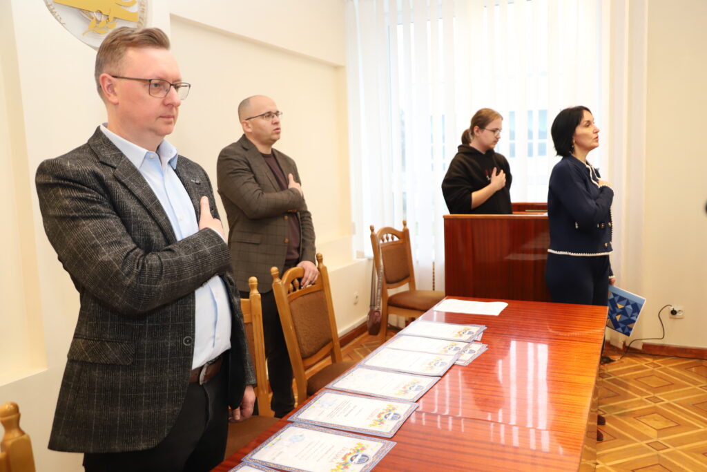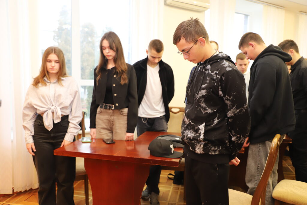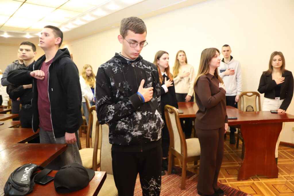 Розпочалася зустріч зі вшанування пам’яті всіх Героїв, які віддали життя за Україну. Присутні вшанували хвилиною мовчання усіх загиблих, а згодом залу об’єднав звучний Гімн України.
