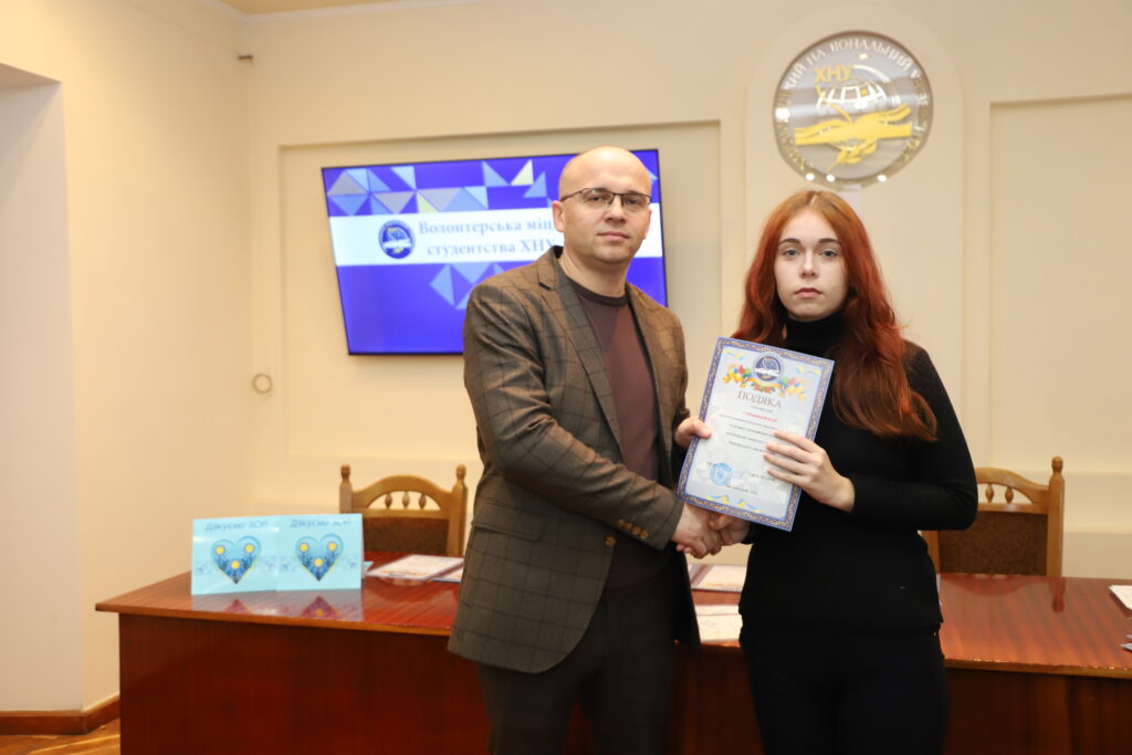 У вступному слові організатори наголосили: сучасні студенти ХНУ – це не лише молодь, яка навчається, складає сесії та працює над різними проєктами. Це молоді люди з великими серцями. Вони плетуть маскувальні сітки, здають кров, збирають гуманітарну допомогу, проводять благодійні заходи, виготовляють окопні свічки, відвідують хворих у шпиталях, підтримують переселенців і допомагають захисникам як можуть.