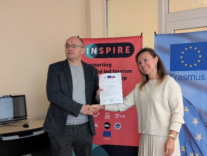 Проєкт INSPIRE реалізується за підтримки програми ERASMUS+ у партнерстві з університетами та організаціями з Ірландії, Хорватії, Туреччини, Бельгії та України. Його мета – підтримати біженців, допомогти їм здобути знання та навички, необхідні для започаткування власної справи у сфері туризму, а також сприяти їхній соціальній інтеграції через освіту та підприємництво.