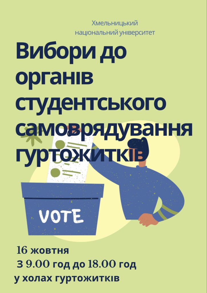 16 жовтня у Хмельницькому національному університеті відбулися вибори до органів студентського самоврядування гуртожитків. Студенти обирали голів студентської ради гуртожитків, які впродовж року представлятимуть інтереси мешканців перед адміністрацією університету.