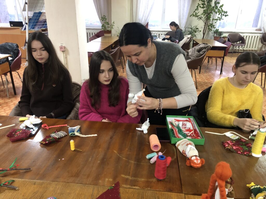 Під наставництвом досвідчених майстринь – Олени Покотило, Марини Соколової та Анни Корольової студенти створили свої перші ляльки-мотанки.
